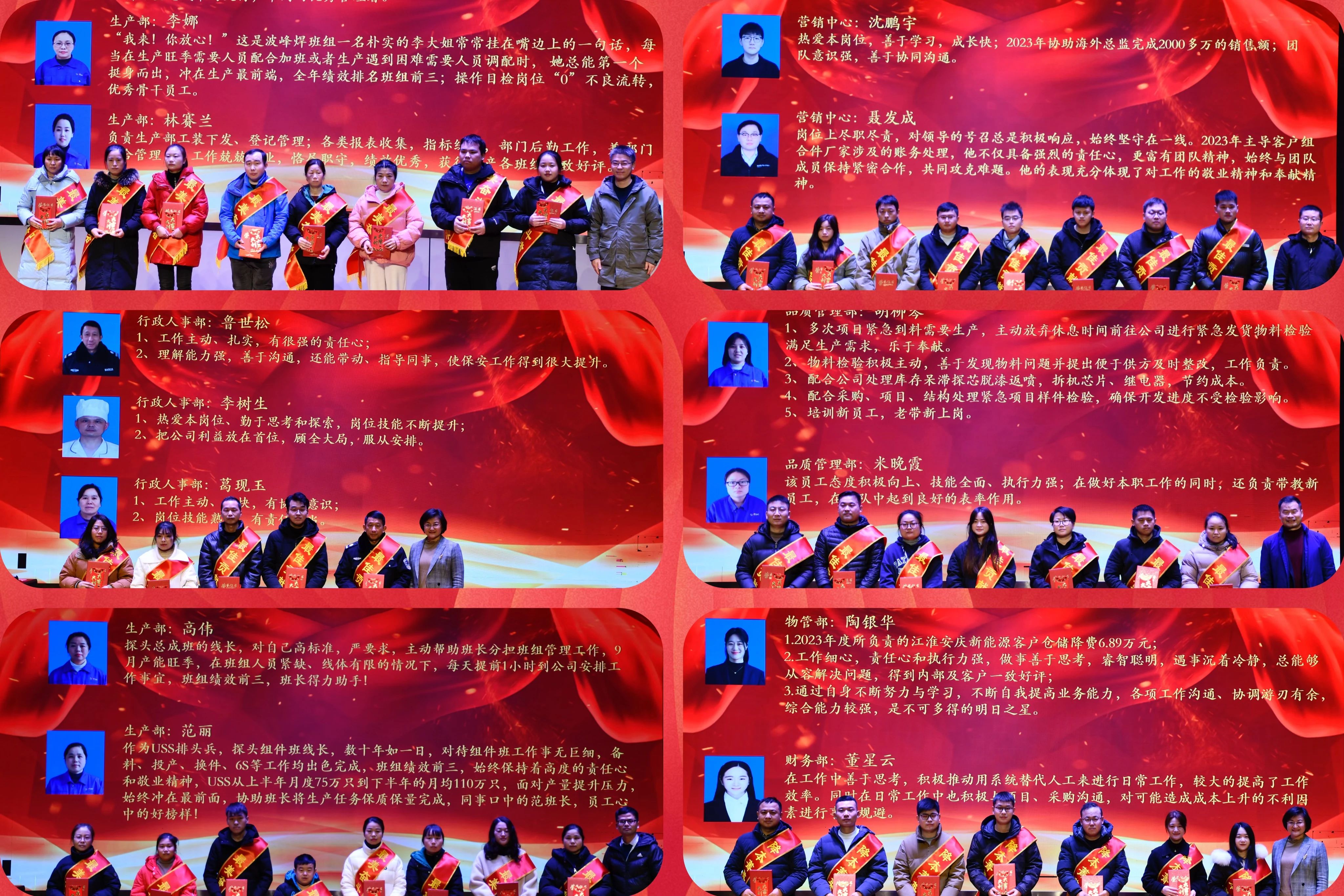 2023年我們成功舉辦了公司20周年慶典,這一年,取得了多項新的突破,公司的銷售額大幅增長,其中,外貿(mào)出口增長超過500%;CAM、BE產(chǎn)品的銷售進入國內(nèi)市場的TOP10;連續(xù)六次被認(rèn)定為國家高新技術(shù)企業(yè);被評為2023年皖美品牌示范企業(yè);“晟泰克汽車智能化關(guān)鍵傳感器智能制造”入選合肥市工業(yè)互聯(lián)網(wǎng)創(chuàng)新應(yīng)用示范項目。因我司在汽車智能化關(guān)鍵傳感器方面取得的突出成績,央視財經(jīng)頻道在黃金時段播放了對我司的專訪。這些成績離不開那些在各自崗位上默默奉獻的優(yōu)秀團隊和個人,他們的勤奮與努力是公司發(fā)展的動力。