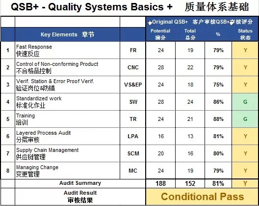2017年7月合肥晟泰克汽車電子股份有限公司開始導(dǎo)入QSB+質(zhì)量體系基礎(chǔ)。歷經(jīng)15個月之余, 2018年10月QSB+ 13個模塊全部導(dǎo)入結(jié)束。 前不久我司導(dǎo)入的QSB+ 以81%的審核結(jié)果通過第三方和二方奇瑞客戶的驗收。