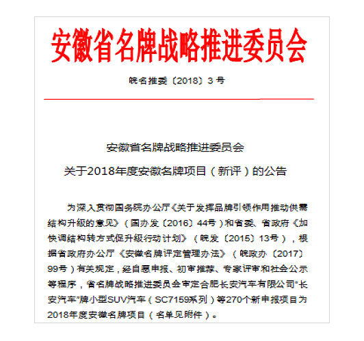 日前,安徽省名牌戰(zhàn)略推進委員會發(fā)布《關(guān)于2018年度安徽省名牌項目(新評)的公告》(皖名推委〔2018〕3號),合肥晟泰克汽車電子股份有限公司獲評為2018年度安徽名牌。安徽名牌是經(jīng)各市(縣)和省國資委初審?fù)扑],省名牌戰(zhàn)略推進委員會辦公室組織有關(guān)部門和專家綜合評價,并經(jīng)省名推委聯(lián)絡(luò)員會議和省質(zhì)監(jiān)局局長辦公會審議評選出的項目。