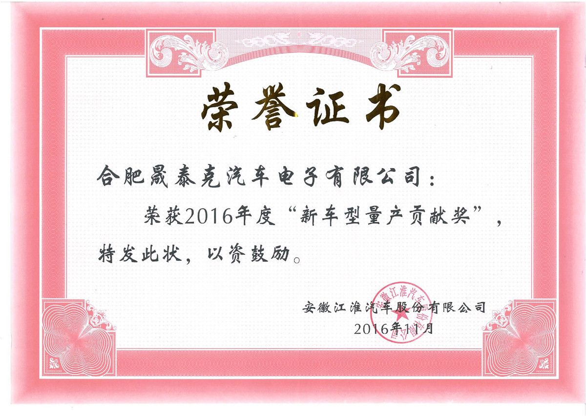 2016年 新車型量產貢獻獎