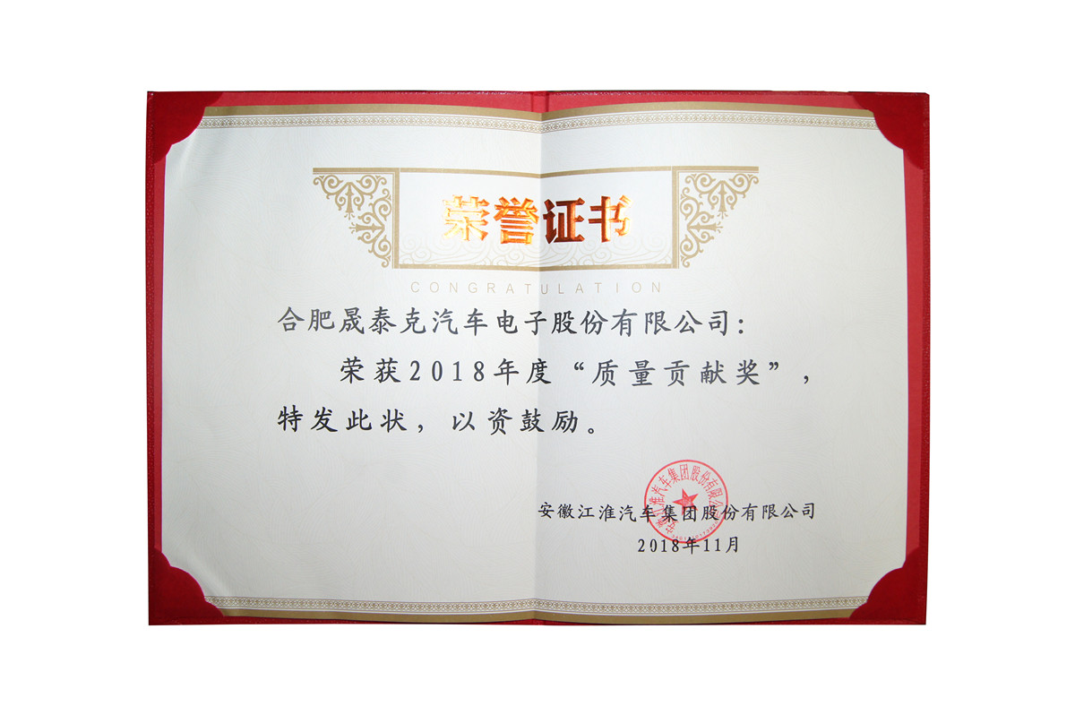 質(zhì)量貢獻(xiàn)獎證書