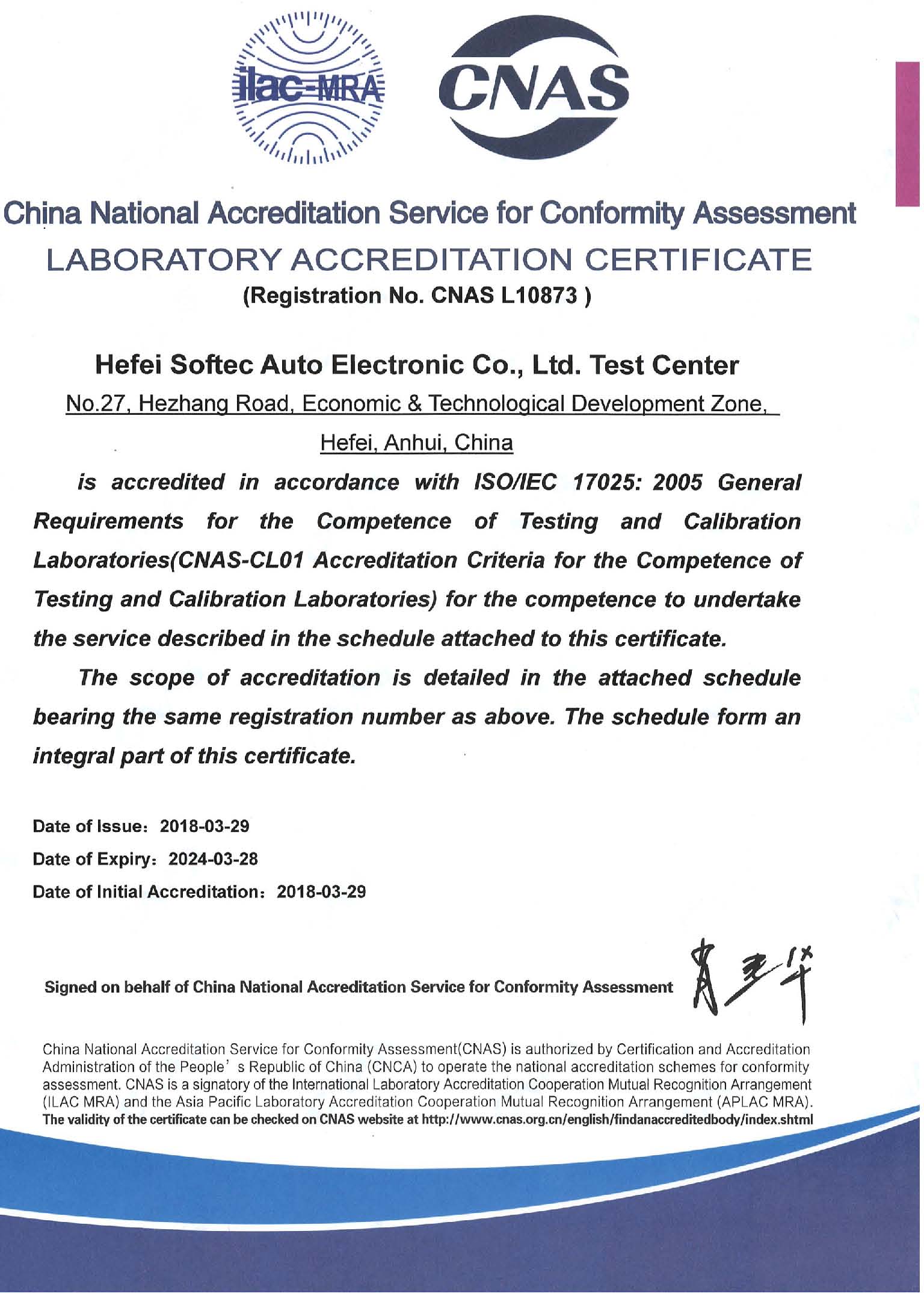 2018年CNAS證書