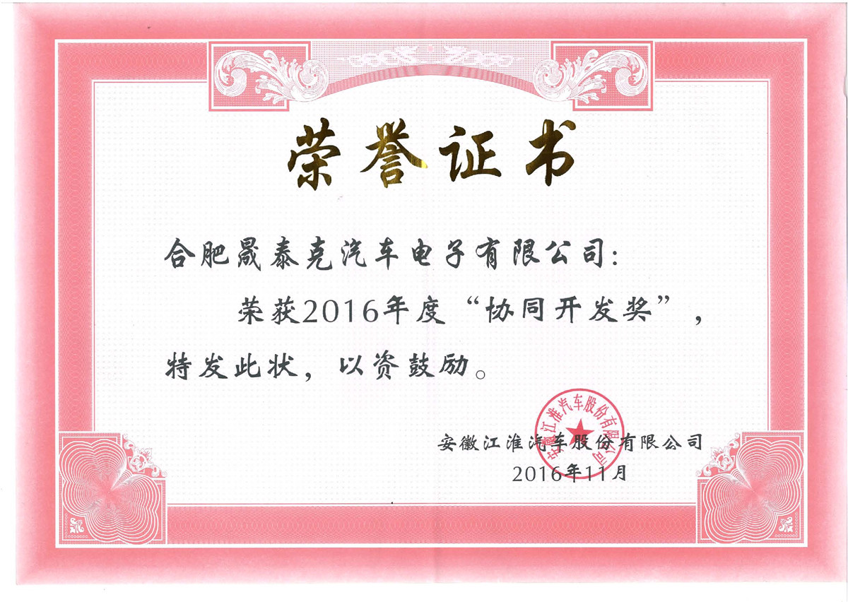 2016年 奇瑞卓越合作表現(xiàn)獎